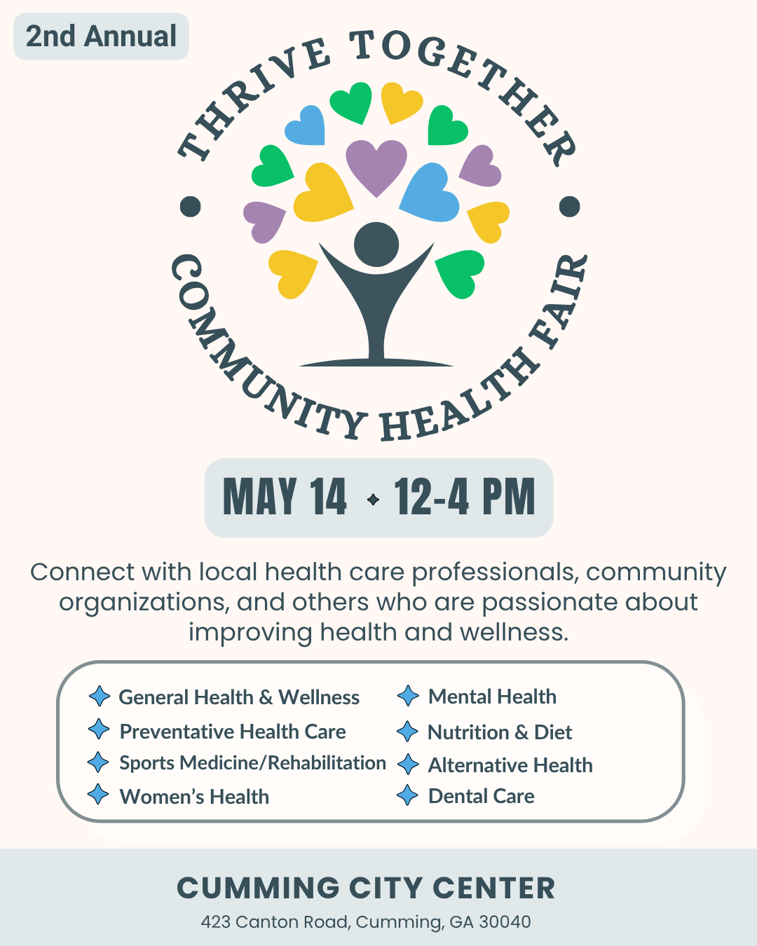 Join us for the 2nd Annual Thrive Together Community Health Fair at the Cumming City Center on May 14 from 12 a.m. to 3 p.m. Local health care professionals and […]